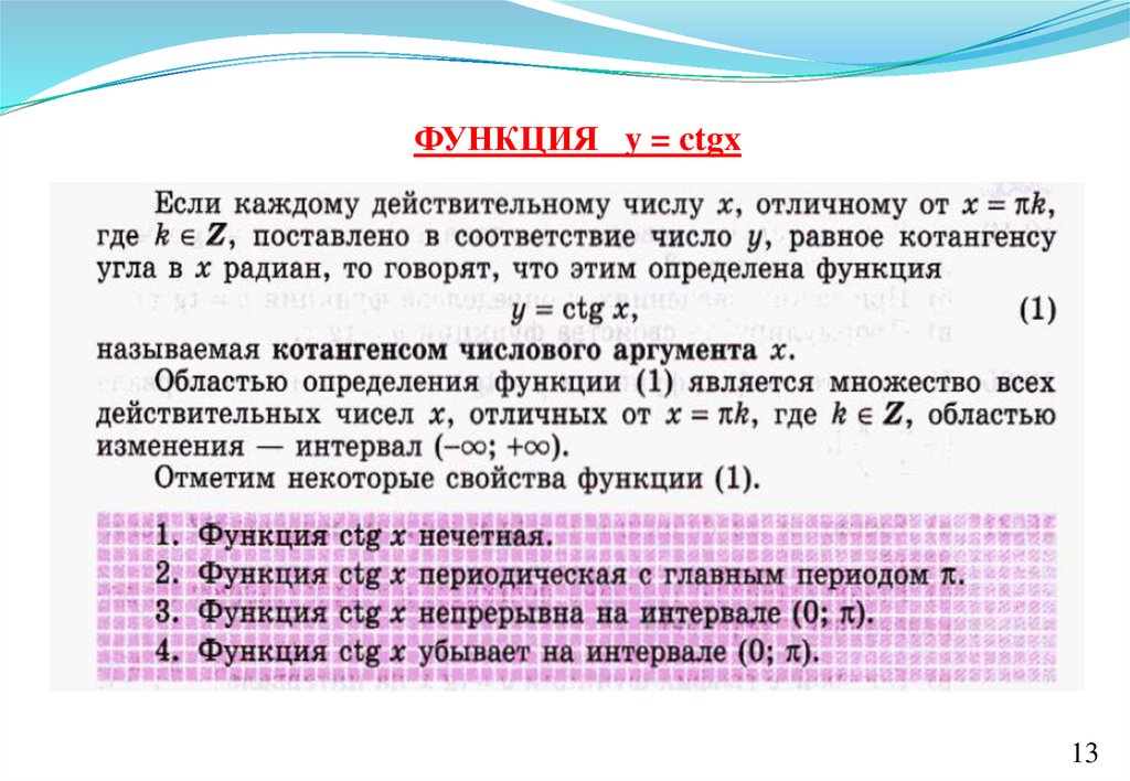 ФУНКЦИЯ y = ctgx