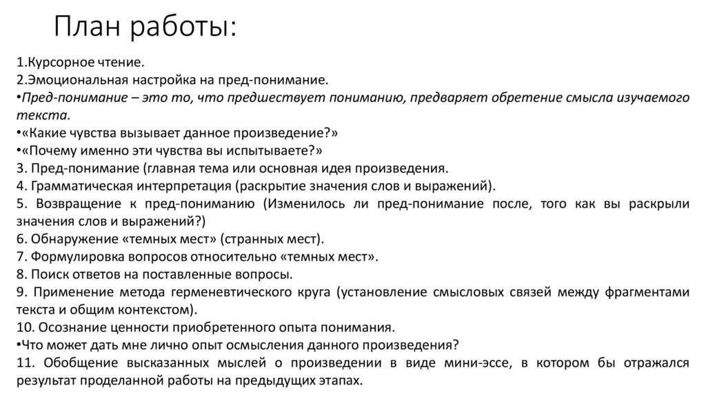 11. Обобщение высказанных мыслей о произведении в виде мини-эссе, в котором бы отражался