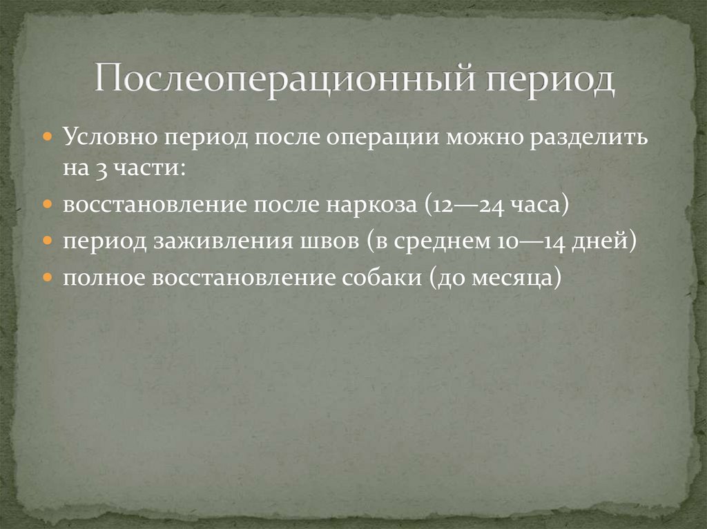 Условно период после операции можно разделитьна 3 части: