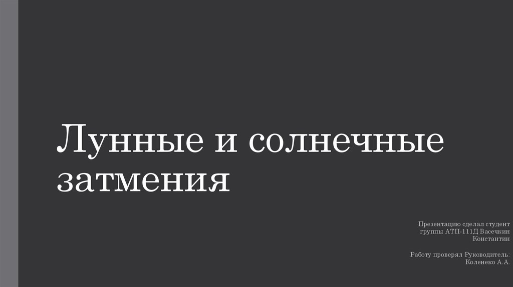 Лунные и солнечныезатмения