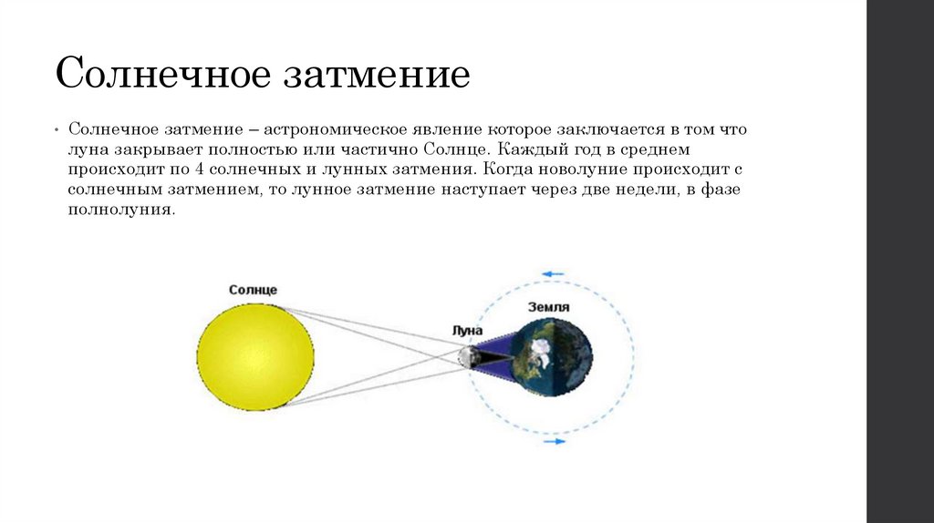 луна закрывает полностью или частично Солнце. Каждый год в среднем