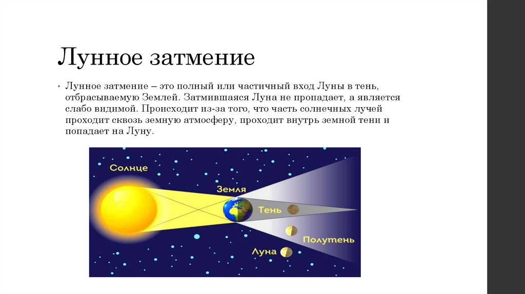 отбрасываемую Землей. Затмившаяся Луна не пропадает, а является