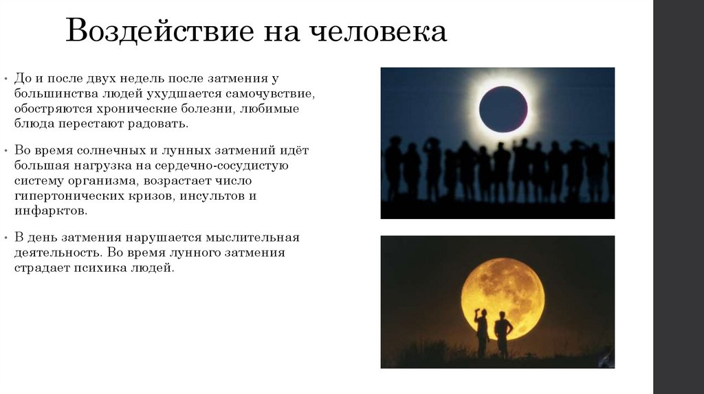Воздействие на человекаДо и после двух недель после затмения у