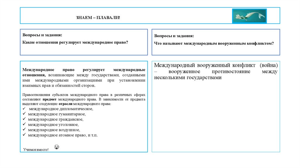 ЗНАЕМ – ПЛАВАЛИ!Вопросы и задания:
