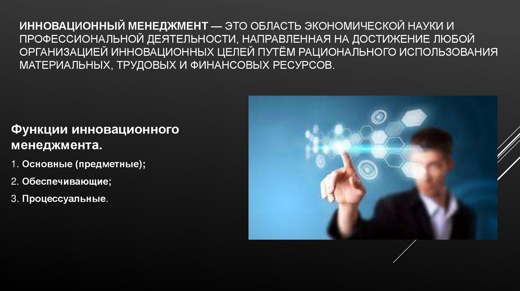 ИННОВАЦИОННЫЙ МЕНЕДЖМЕНТ — ЭТО ОБЛАСТЬ ЭКОНОМИЧЕСКОЙ НАУКИ ИПРОФЕССИОНАЛЬНОЙ ДЕЯТЕЛЬНОСТИ, НАПРАВЛЕННАЯ НА ДОСТИЖЕНИЕ ЛЮБОЙ