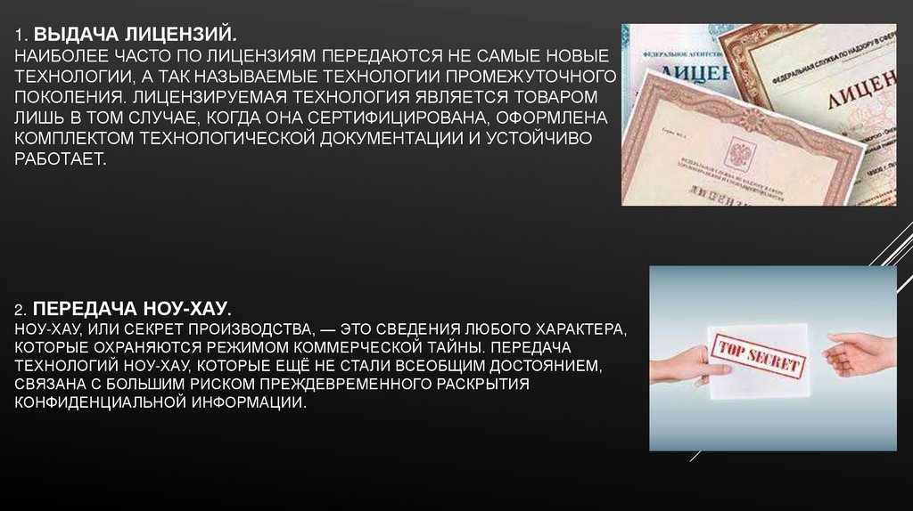 1. ВЫДАЧА ЛИЦЕНЗИЙ.НАИБОЛЕЕ ЧАСТО ПО ЛИЦЕНЗИЯМ ПЕРЕДАЮТСЯ НЕ САМЫЕ НОВЫЕ