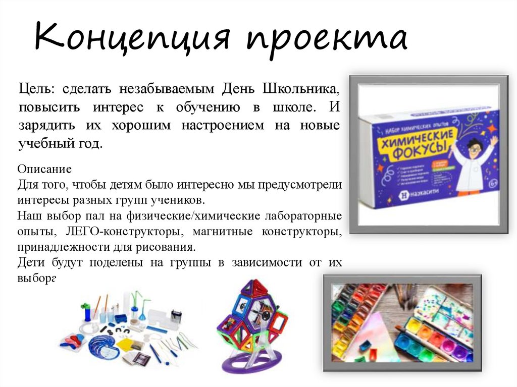 Концепция проектаЦель: сделать незабываемым День Школьника,