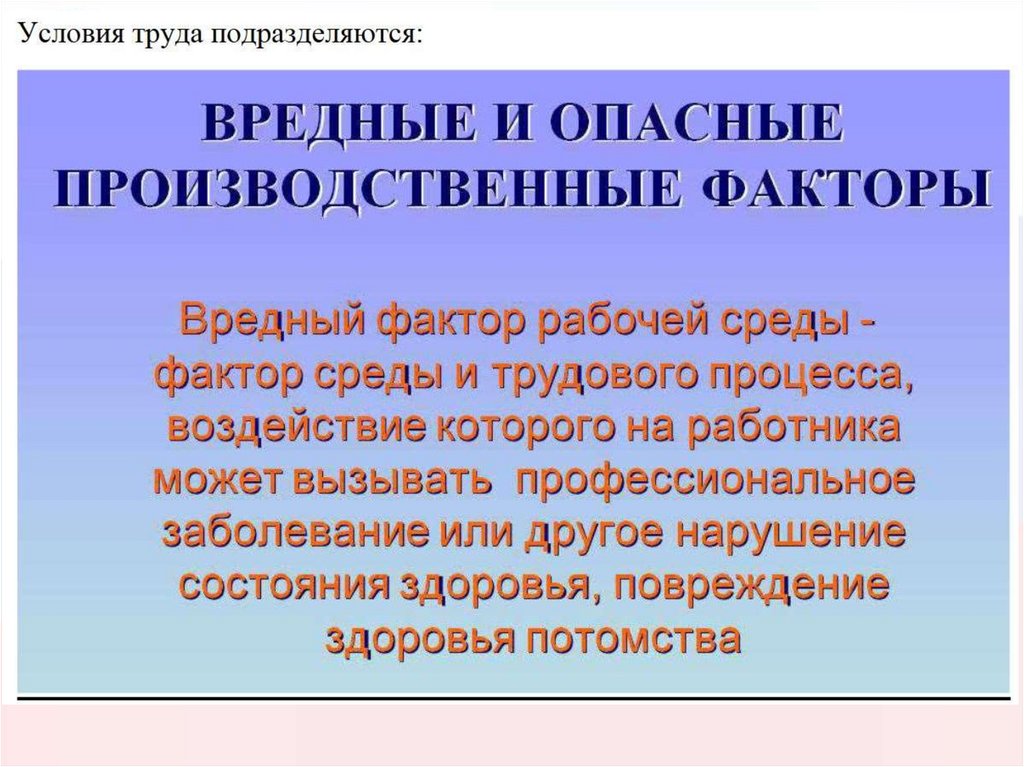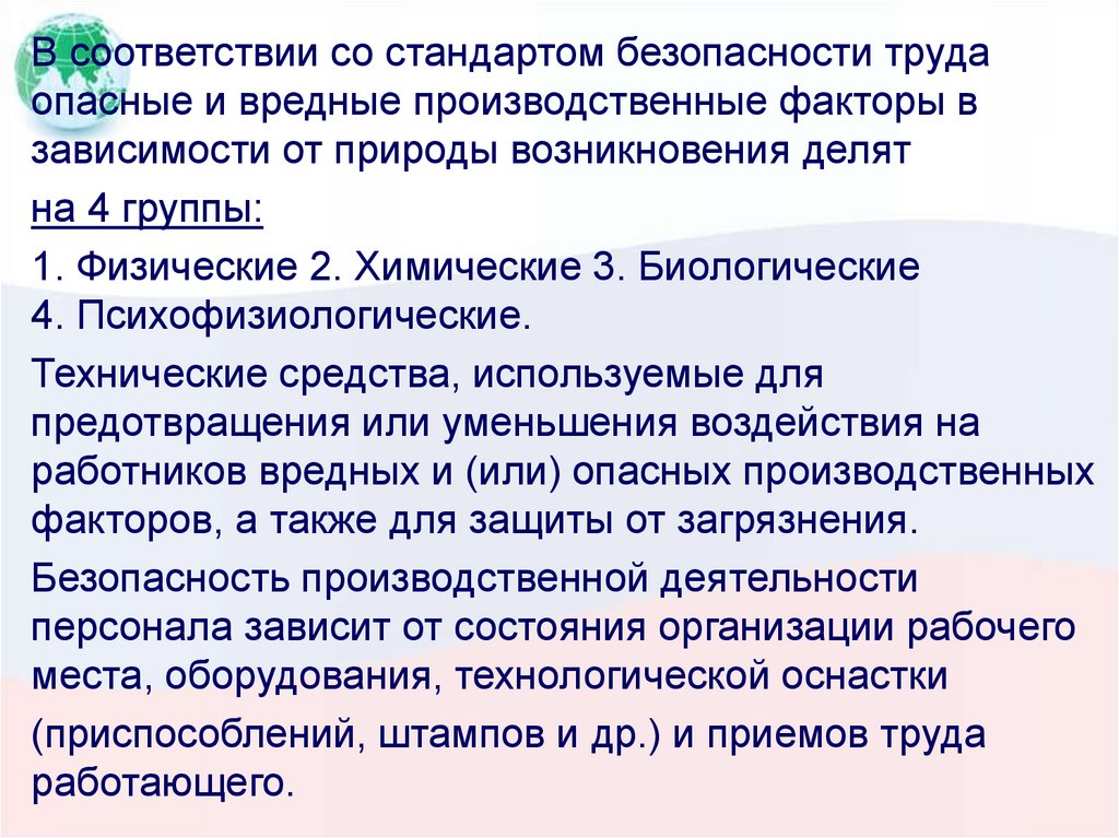 В соответствии со стандартом безопасности трудаопасные и вредные производственные факторы в