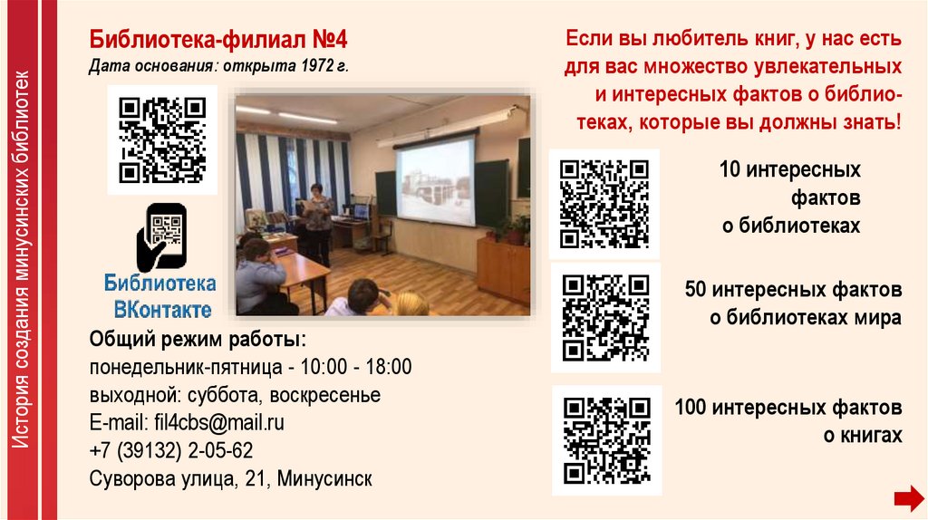 История создания минусинских библиотекБиблиотека-филиал №4