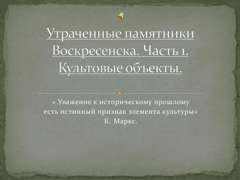 « Уважение к историческому прошломуесть истинный признак элемента культуры»