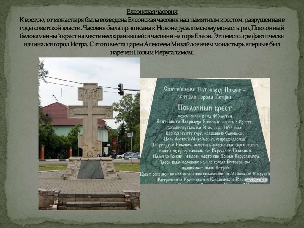 святыня Нового Иерусалима, находившаяся к востоку от Воскресенского