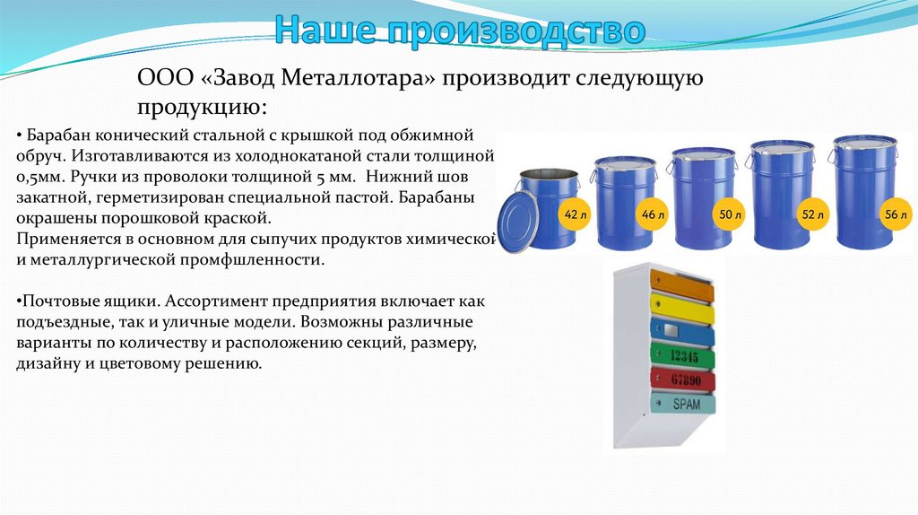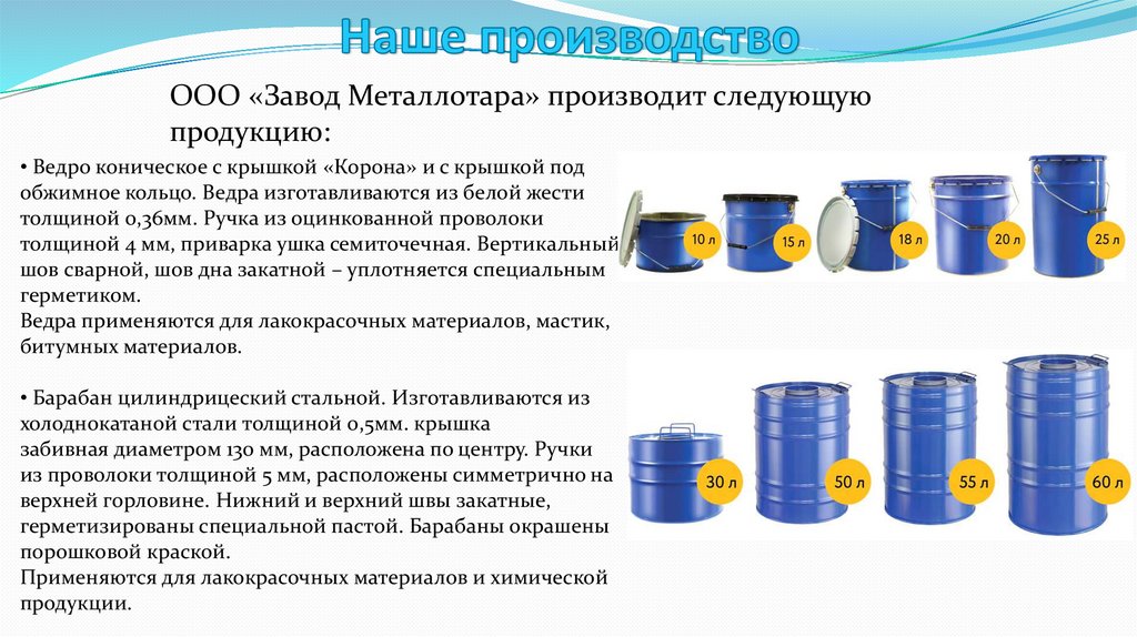 ООО «Завод Металлотара» производит следующуюпродукцию: