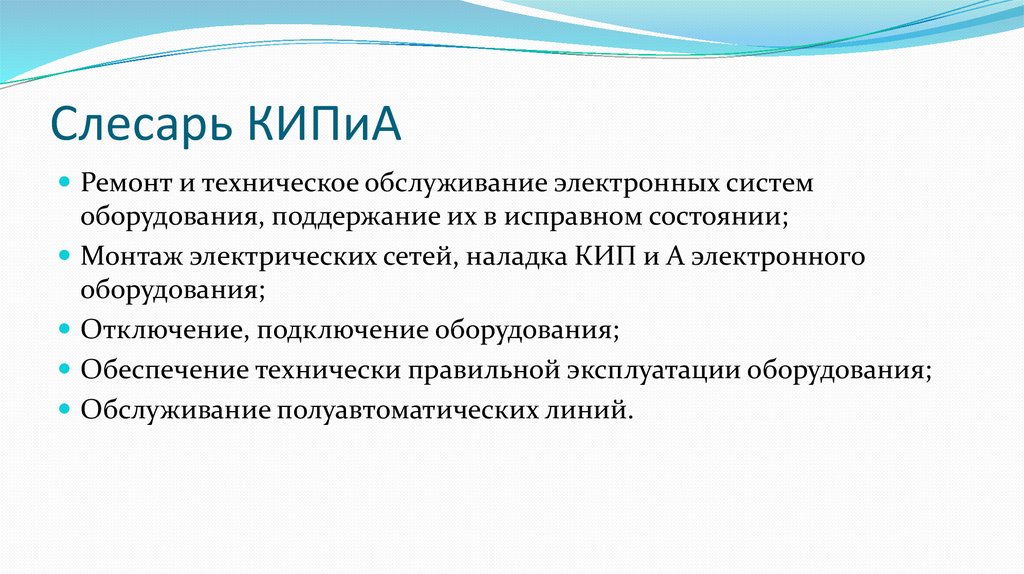 Слесарь КИПиАРемонт и техническое обслуживание электронных систем