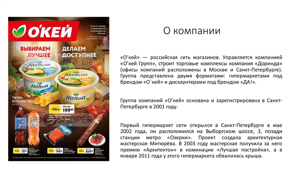 О компании«О’кей» — российская сеть магазинов. Управляется компанией