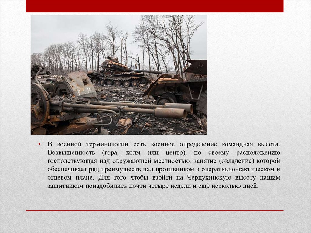 огневом плане. Для того чтобы взойти на Чернухинскую высоту нашим