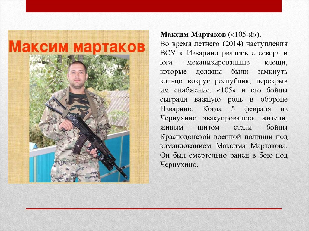 Максим Мартаков («105-й»).Во время летнего (2014) наступления