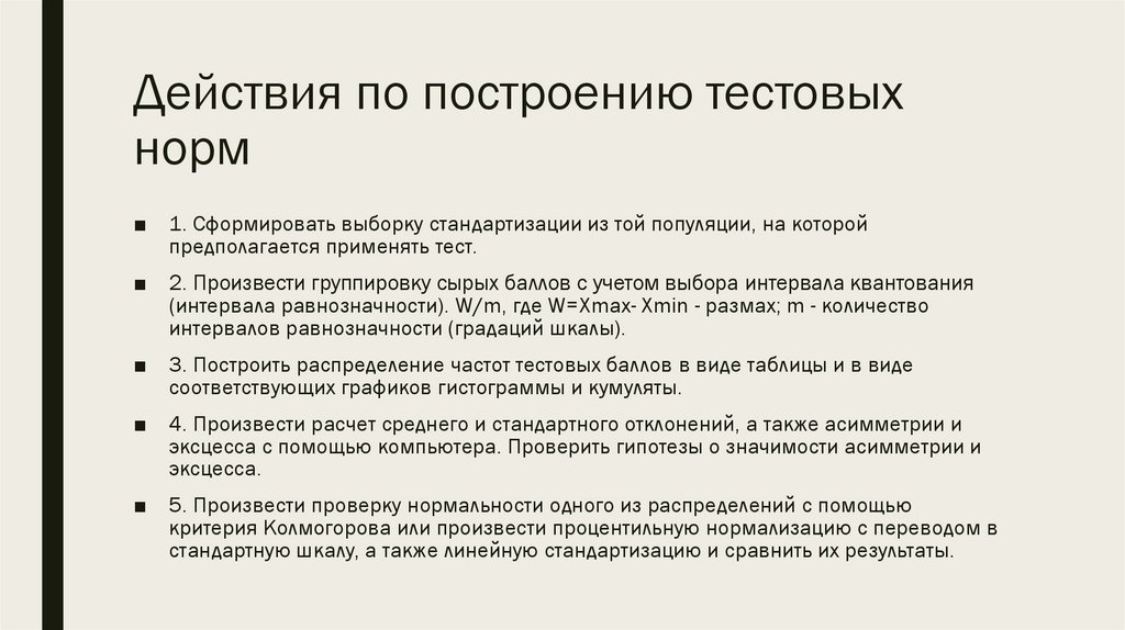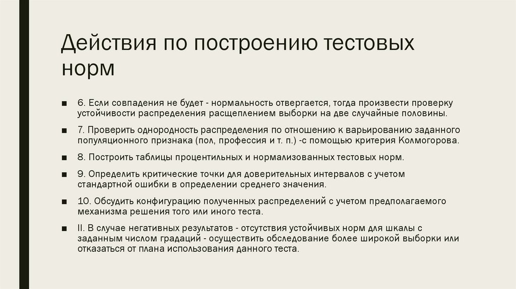ДЕЙСТВИЯ ПО ПОСТРОЕНИЮТЕСТОВЫХ НОРМ И ПРОВЕРКЕ