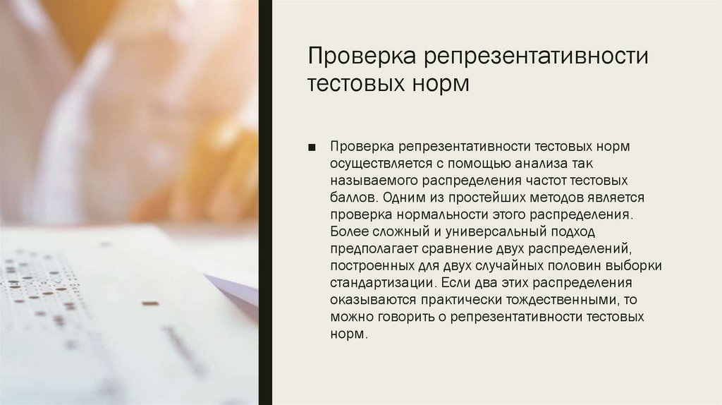 Проверка репрезентативноститестовых норм