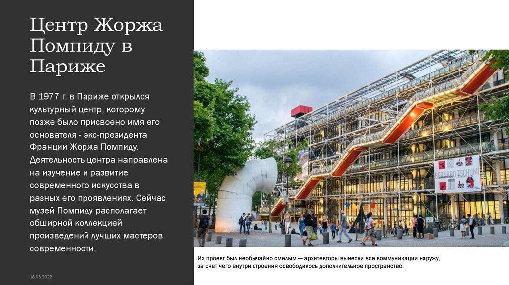 Их проект был необычайно смелым — архитекторы вынесли все коммуникации наружу,