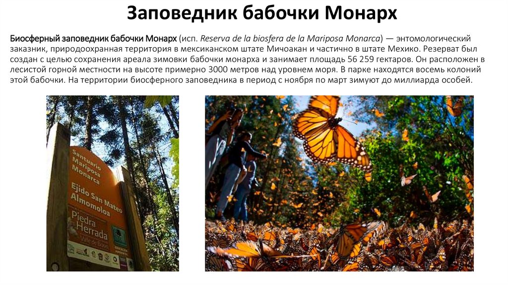 этой бабочки. На территории биосферного заповедника в период с ноября по март зимуют до миллиарда особей.