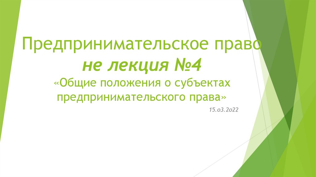 Общие положения о субъектах предпринимательского права. Лекция 4