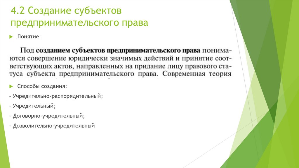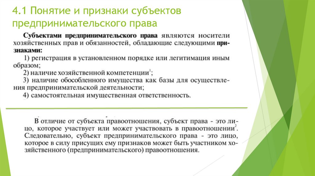 4.1 Понятие и признаки субъектовпредпринимательского права