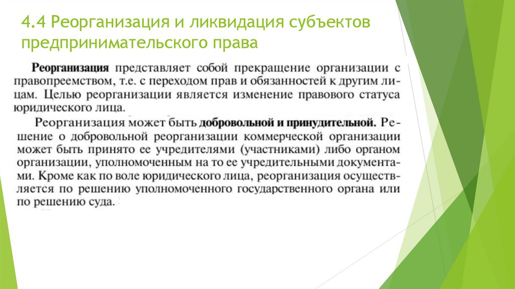 4.4 Реорганизация и ликвидация субъектовпредпринимательского права