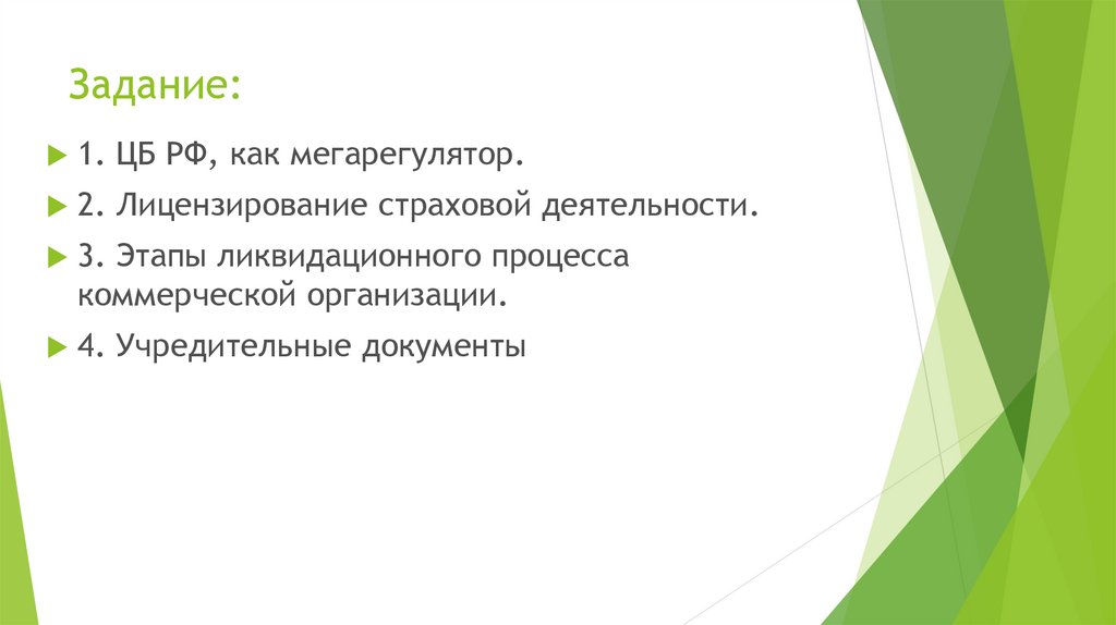 Задание:1. ЦБ РФ, как мегарегулятор.