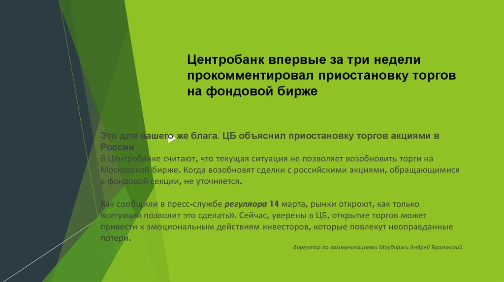 Это для вашего же блага. ЦБ объяснил приостановку торгов акциями в