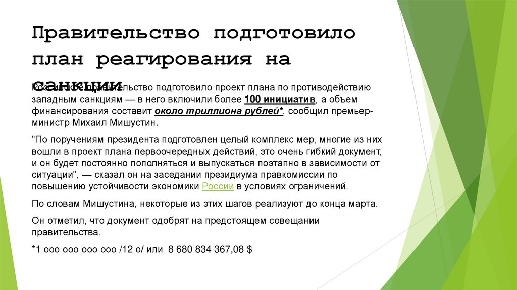 По словам Мишустина, некоторые из этих шагов реализуют до конца марта.