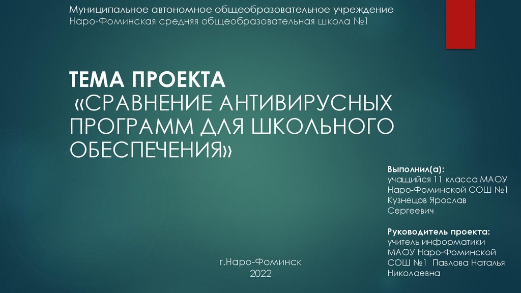 Муниципальное автономное общеобразовательное учреждениеНаро-Фоминская средняя общеобразовательная школа №1