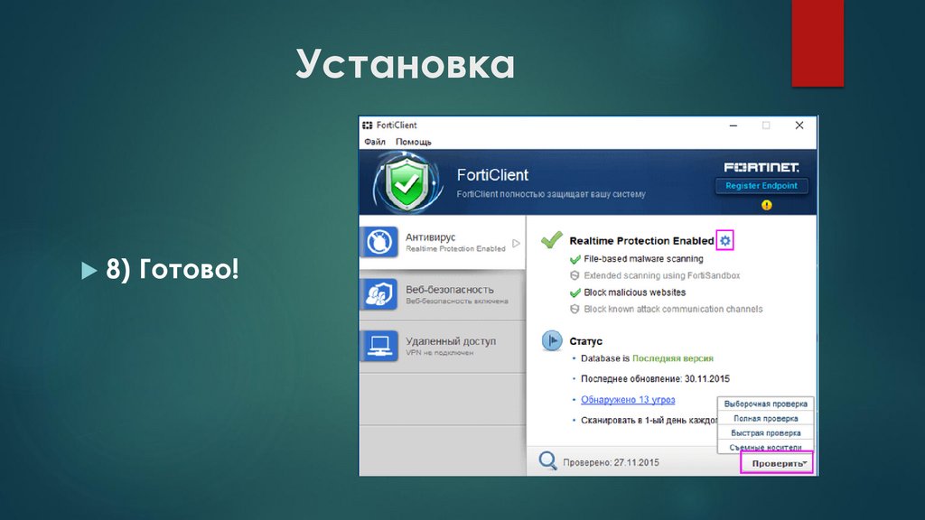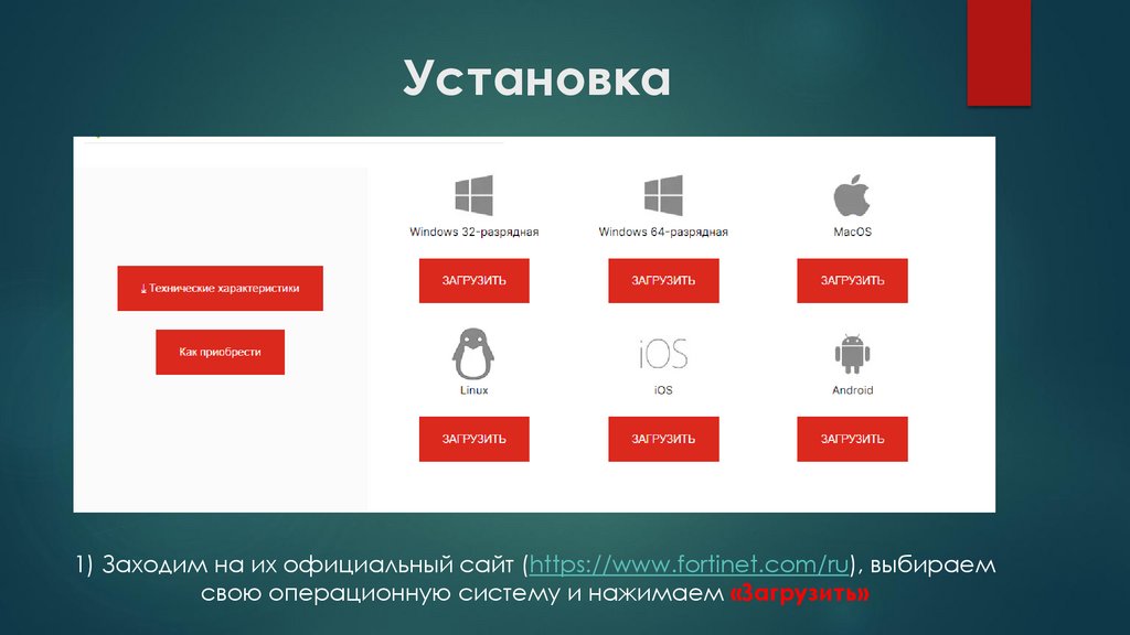 Установка1) Заходим на их официальный сайт (https://www.fortinet.com/ru), выбираем