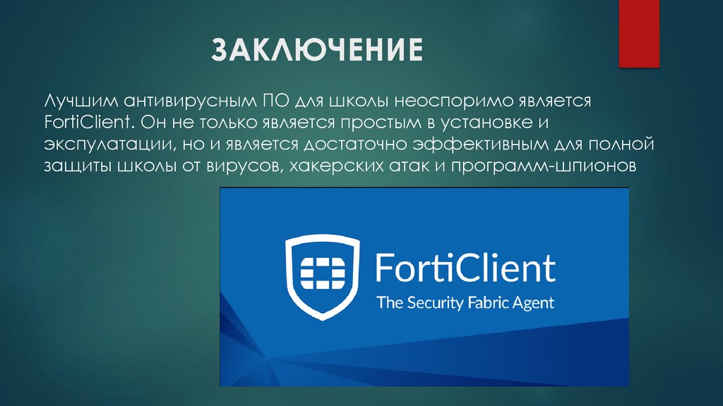 ЗАКЛЮЧЕНИЕЛучшим антивирусным ПО для школы неоспоримо является