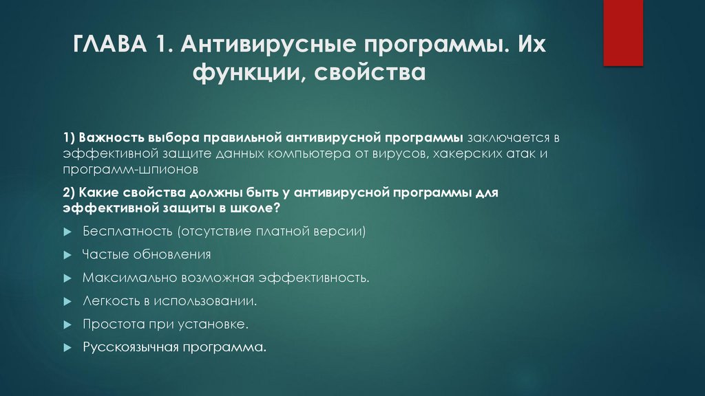 ГЛАВА 1. Антивирусные программы. Ихфункции, свойства
