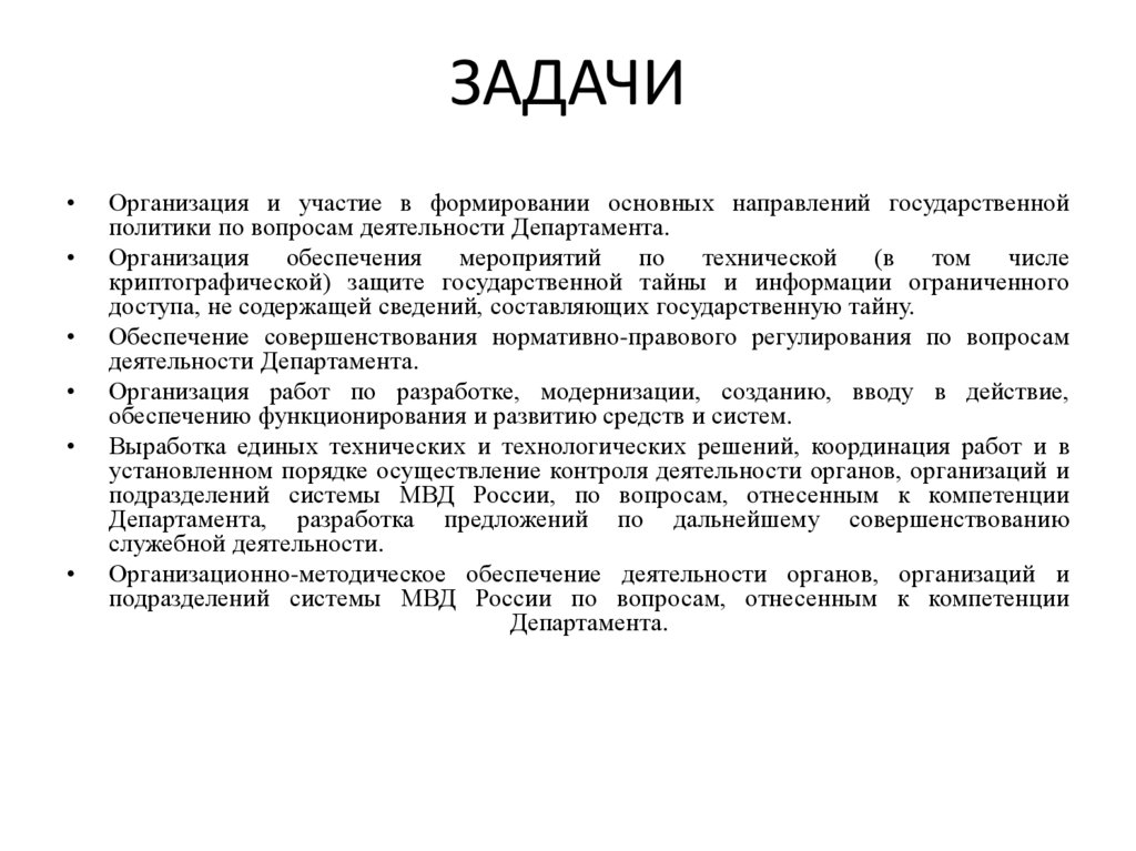 ЗАДАЧИОрганизация и участие в формировании основных направлений государственной