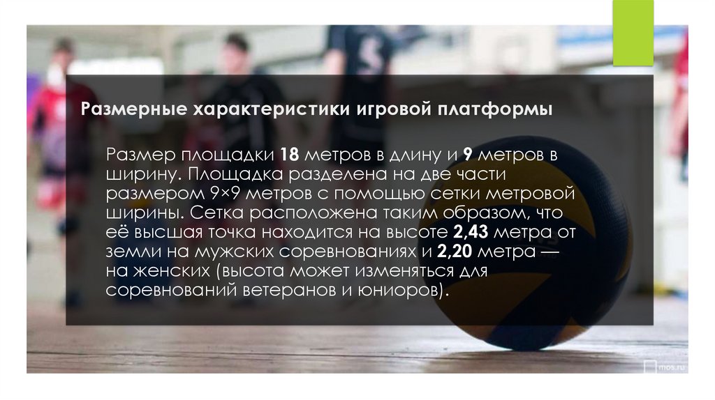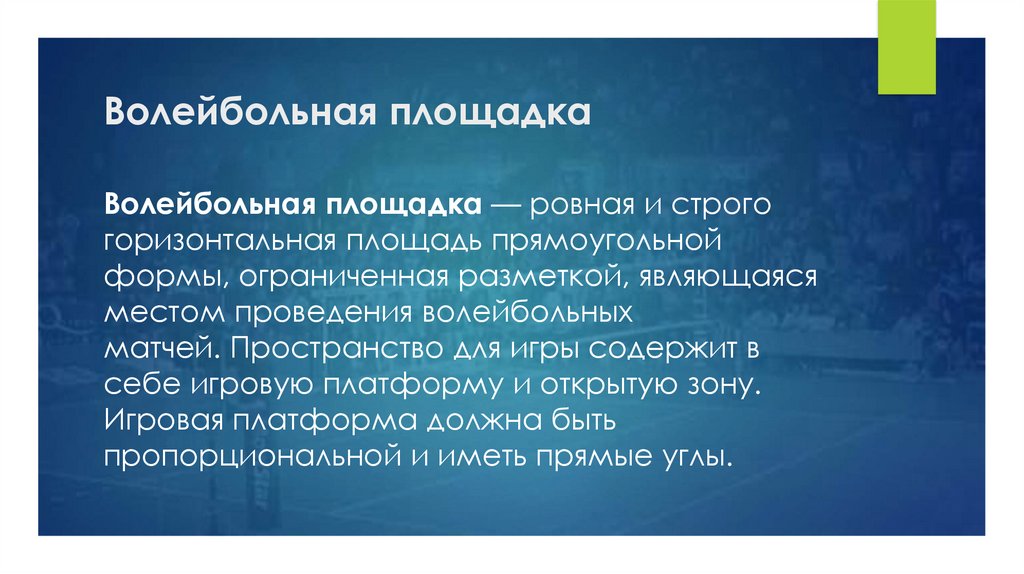 Волейбольная площадкаВолейбольная площадка — ровная и строго