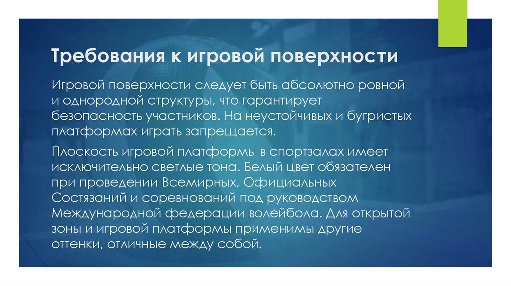 Требования к игровой поверхностиИгровой поверхности следует быть абсолютно ровной