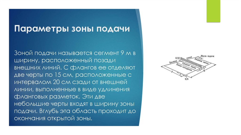 Параметры зоны подачиЗоной подачи называется сегмент 9 м в