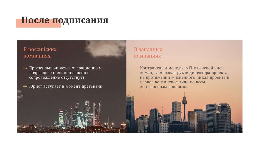 После подписанияВ российских