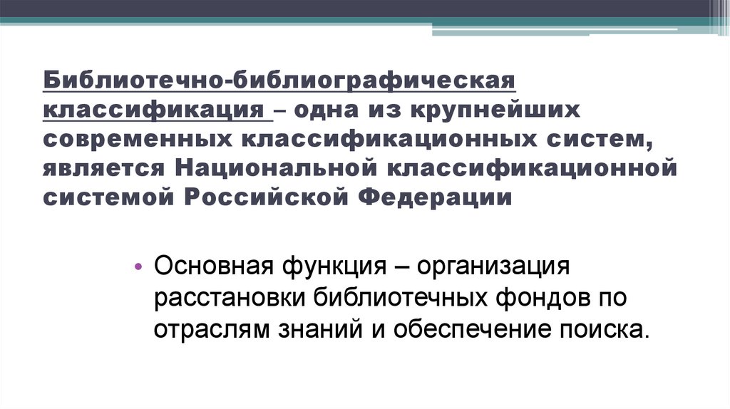 Библиотечно-библиографическаяклассификация – одна из крупнейших