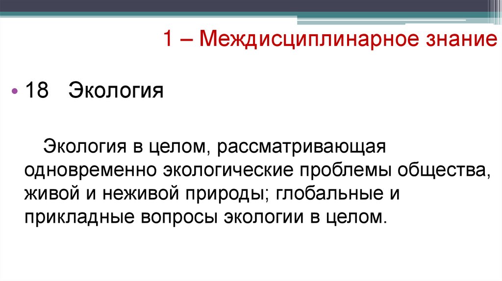 1 – Междисциплинарное знание• 18 Экология