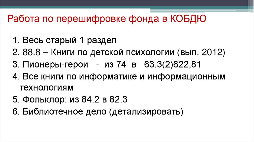 Работа по перешифровке фонда в КОБДЮ1. Весь старый 1 раздел