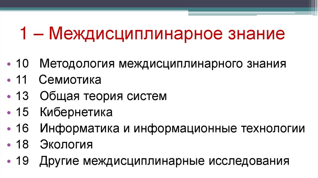 1 – Междисциплинарное знание• 19 Другие междисциплинарные