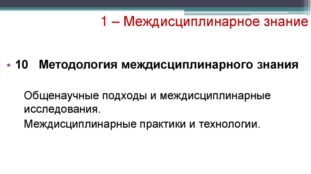 1 – Междисциплинарное знание• 10 Методология междисциплинарного знания