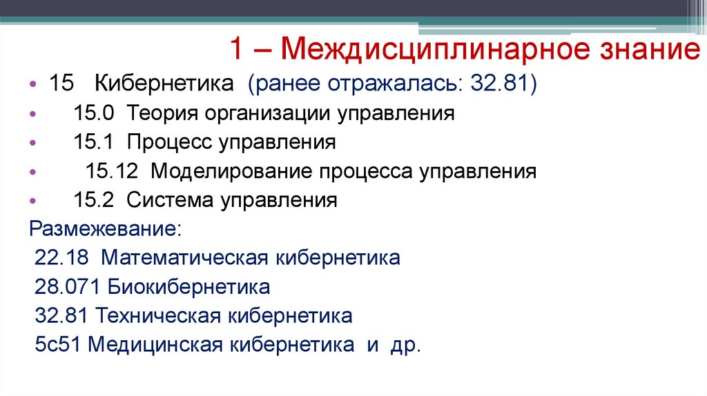1 – Междисциплинарное знание• 15 Кибернетика (ранее отражалась: 32.81)