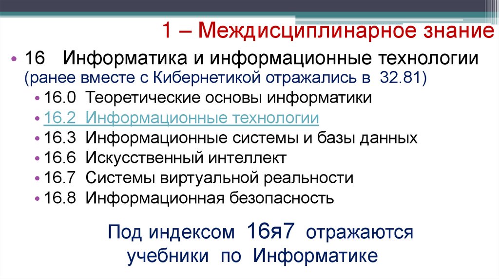 1 – Междисциплинарное знание• 16 Информатика и информационные технологии