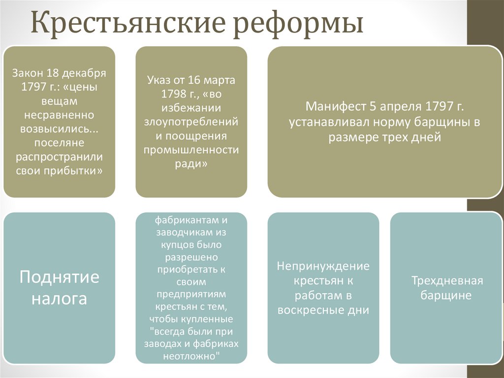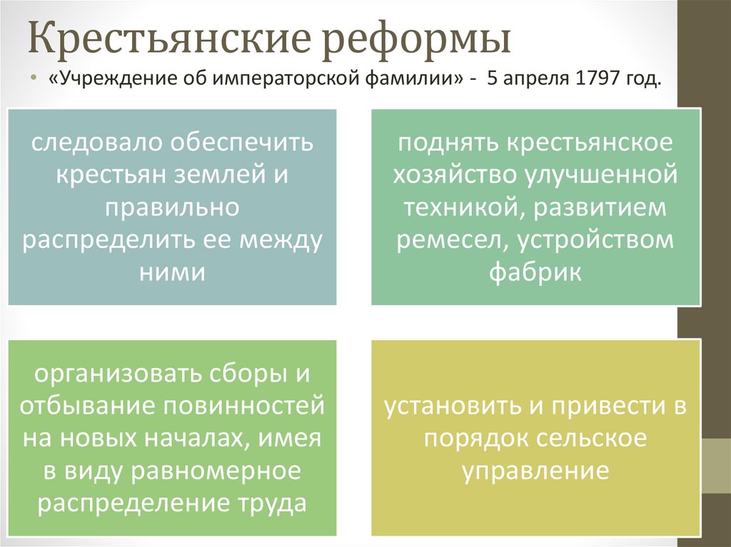 Крестьянские реформы• «Учреждение об императорской фамилии» - 5 апреля 1797 год.
