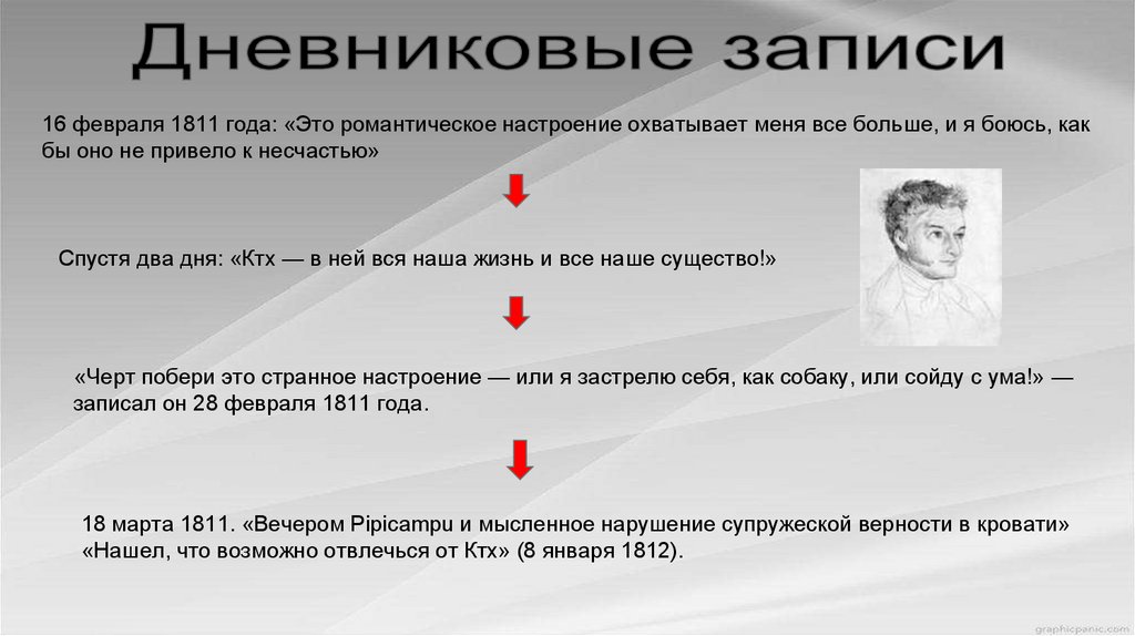 16 февраля 1811 года: «Это романтическое настроение охватывает меня все больше, и я боюсь, какбы оно не привело к несчастью»