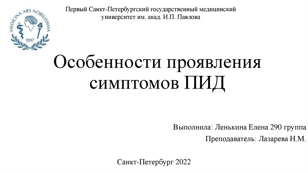 Первый Санкт-Петербургский государственный медицинскийуниверситет им. акад. И.П. Павлова
