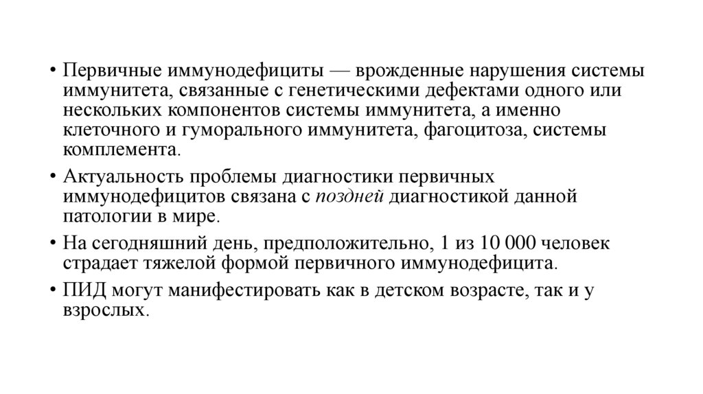 • Первичные иммунодефициты — врожденные нарушения системыиммунитета, связанные с генетическими дефектами одного или